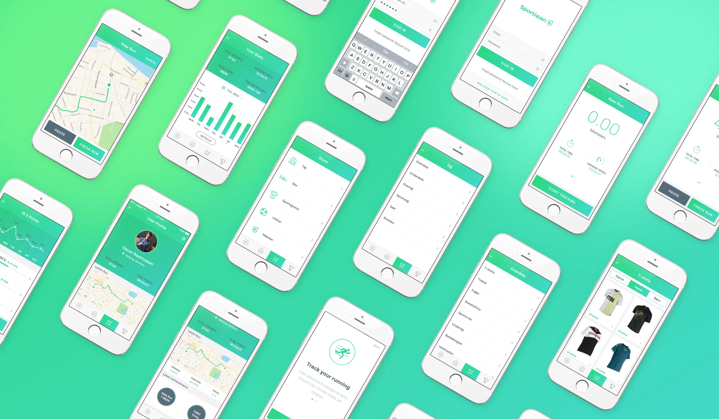 App concept made for Sportigan as part of a collaboration we had with Entire Software ApS. We were responsible for creating the UI and the UX of the app concept. We have been presented with an idea of where users would collect points for each outdoor run. The points can be used to get discounts in the physical store or they can be donated for a social cause.